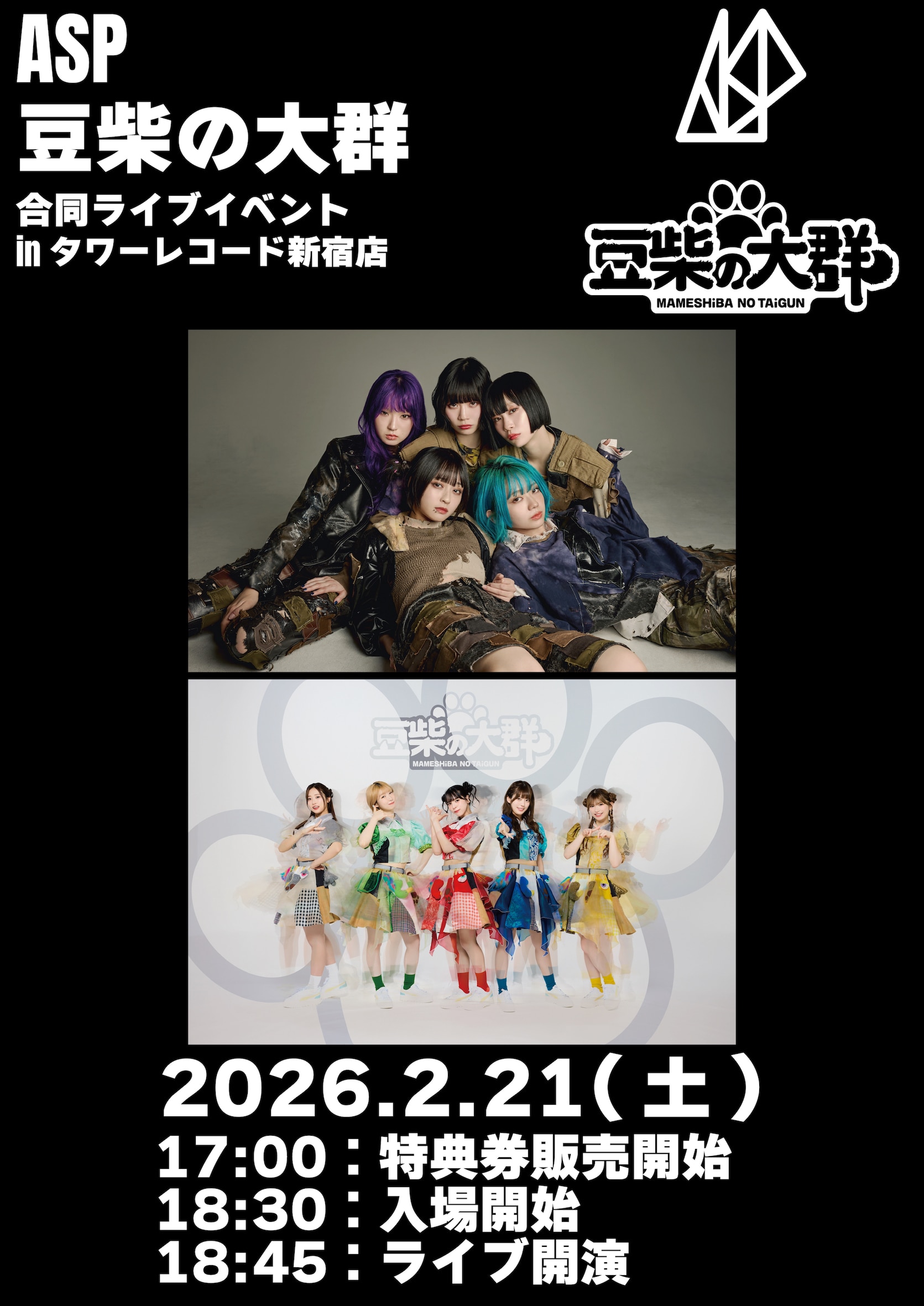 この度、ASP&豆柴の大群 合同ライブイベント in タワーレコード新宿店を開催することが決定いたしました!
